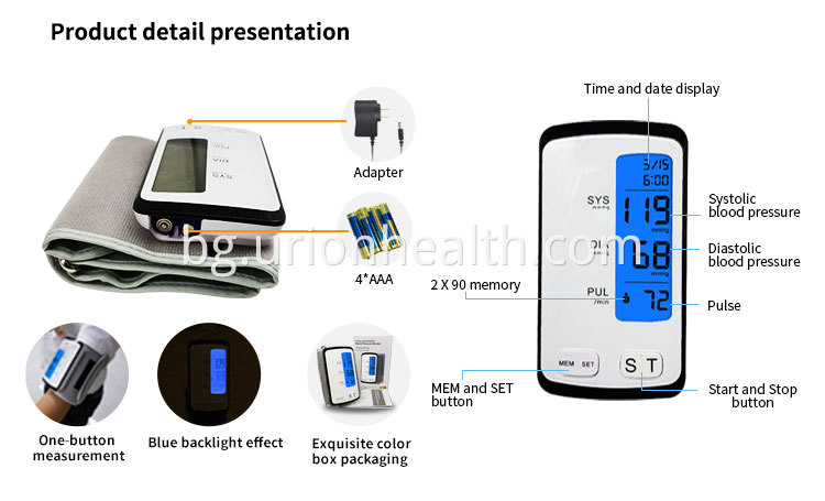 · ☑ Работа с едно докосване: Машината за кръвно налягане е напълно автоматична, просто трябва да натиснете един бутон „Старт“, за да измервате кръвното си налягане и сърдечната честота. Целият процес просто се нуждае от 1 минута.
