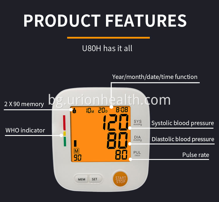 Pressure:0-299mmHg Pulse:40-199 pulses/min |